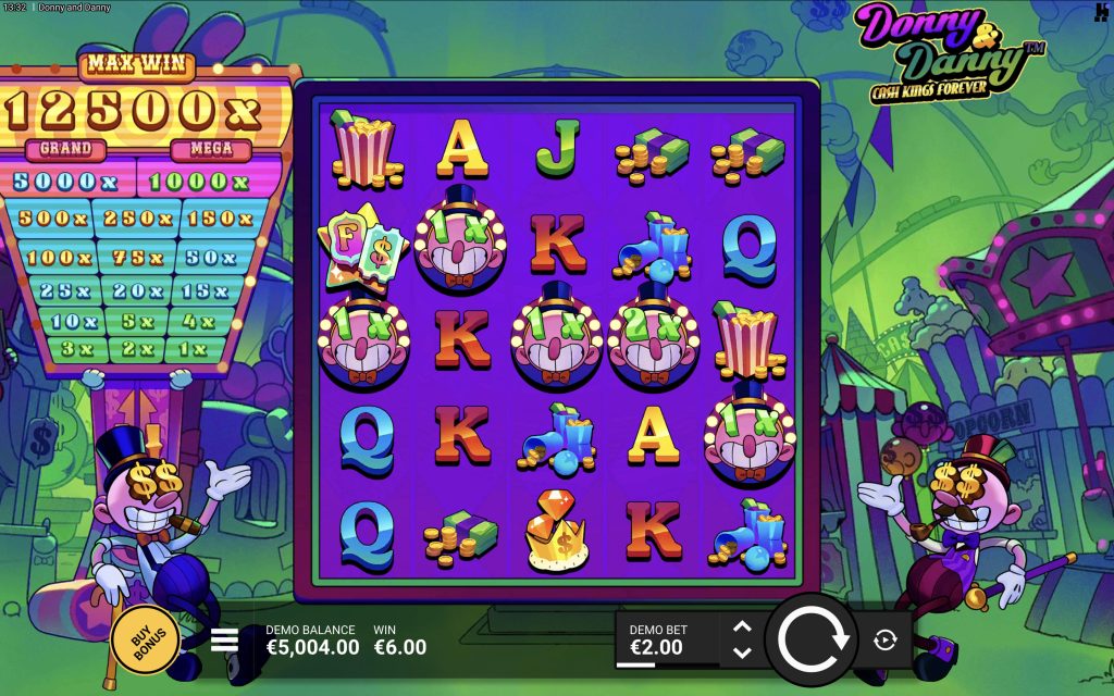 Multiplier effects commonly boost wins by 2× to 10× during LootLine resolutions and bonus rounds — substantially increasing payout potential when hot streaks surge. Review the paytable before playing — it confirms exact payouts for three, four, or five matching regular symbols and details how Donny, Danny and Booster icons behave in each bonus round. Progressive jackpots aren’t in play here, but the fixed 12,500× max win cap keeps things punchy enough for big-win hunters.